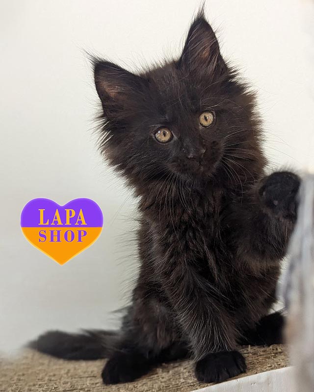 Кошеня породи мейн-кун в пошуку люблячих батьків.