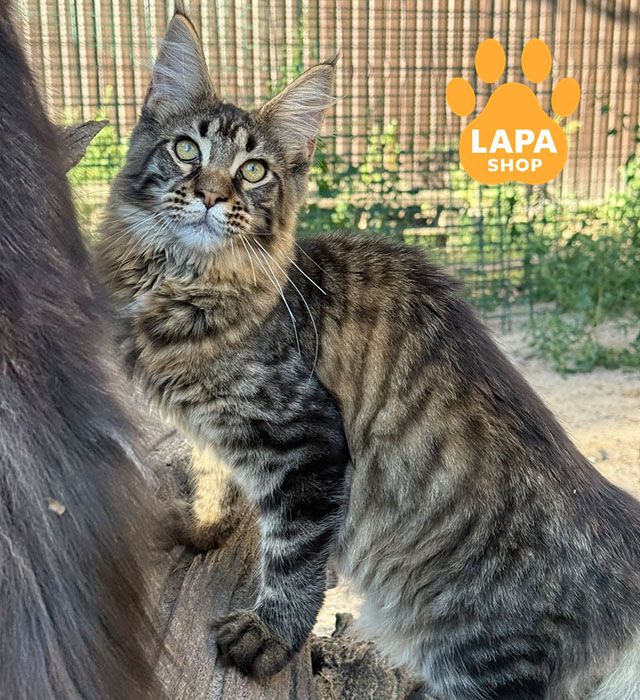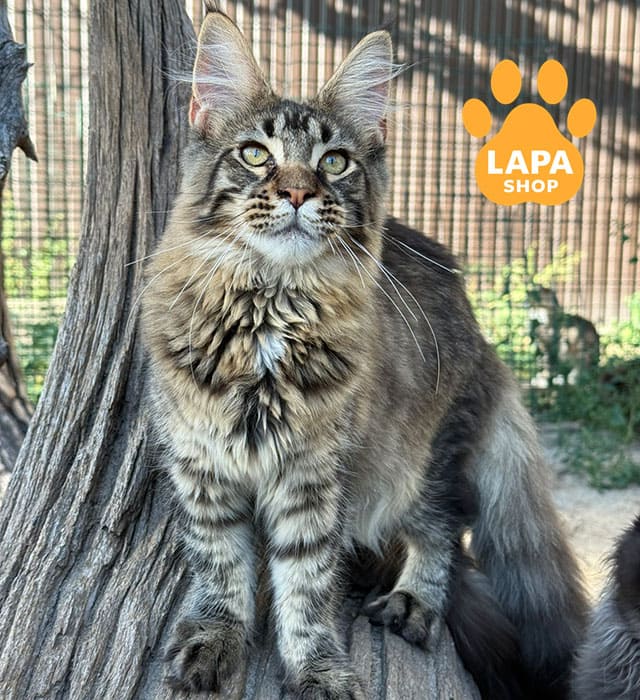 Kukla — граційна мейн-кун кішечка з розкішним чорним тигровим забарвленням, яке підкреслює її шляхетний вигляд. Її сильна постава та витончені риси створюють образ справжньої красуні. Виразний малюнок на шубці додає їй особливого шарму та унікальності.