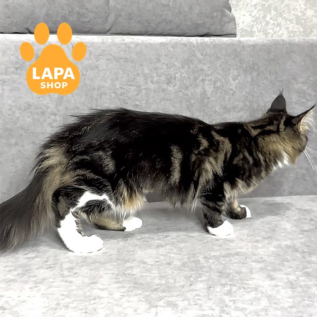 Mimi – чарівна дівчинка мейн-кун F3. Кішечка з розкішною шерстю чорного мармурового біколору та проникливим поглядом. Її походження F3 надає їй особливого шарму та граційності диких предків, зберігаючи лагідний характер домашньої улюблениці.