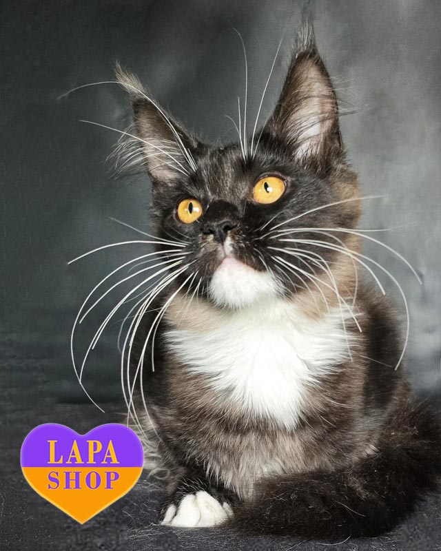 Olivia — маленька леді з вишуканим чорним димним забарвленням і ніжними білими акцентами. Її пухнаста шерсть і виразний погляд одразу привертають увагу. Вона має доглянутий зовнішній вигляд і стане окрасою будь-якої родини.