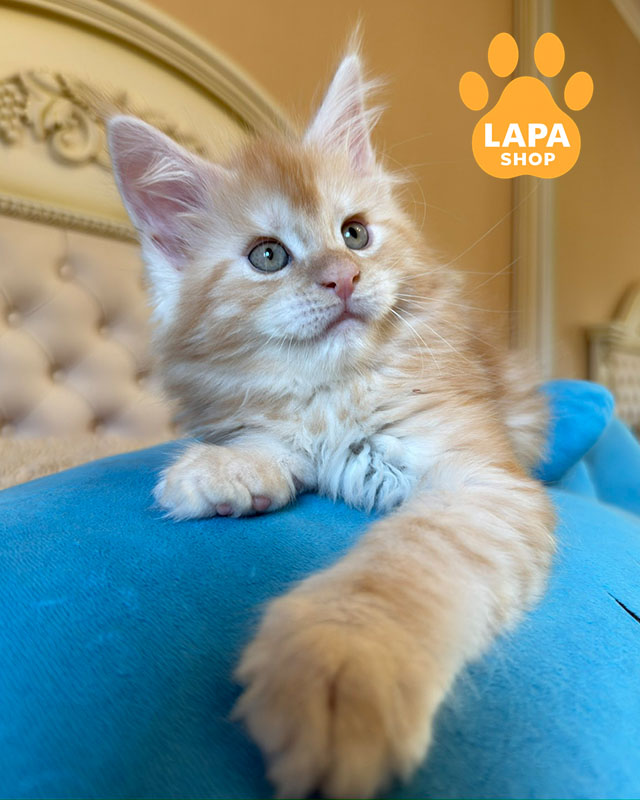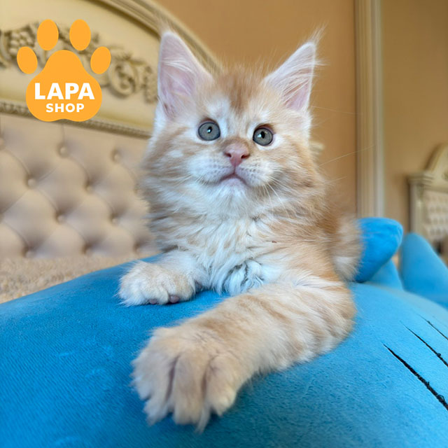 Lexus — вражаючий котик з розкішним червоним сріблястим мармуровим забарвленням, яке виглядає справді ефектно. Його виразна шерсть з чітким мармуровим малюнком підкреслює породний тип і робить зовнішність ще більш шляхетною. Гармонійні риси мордочки та довгі пухнасті вушка додають йому справжньої мейн-кунівської величі.