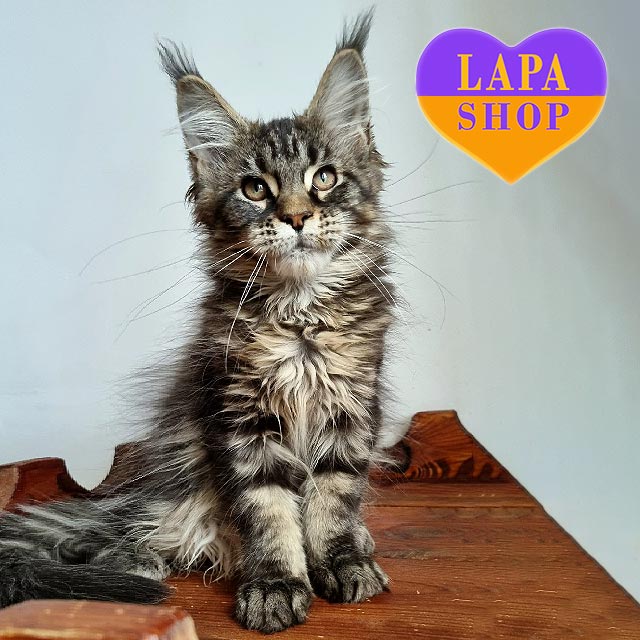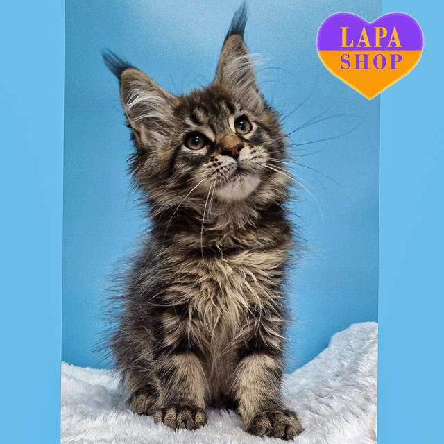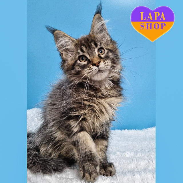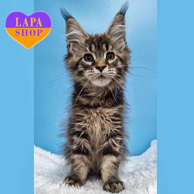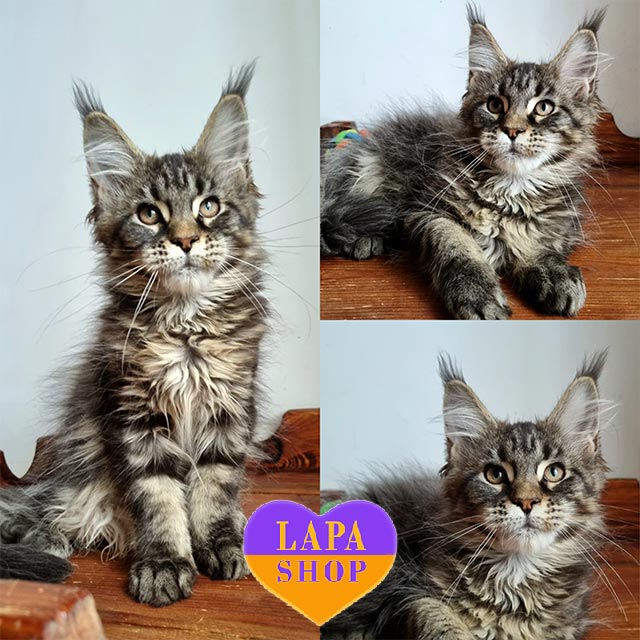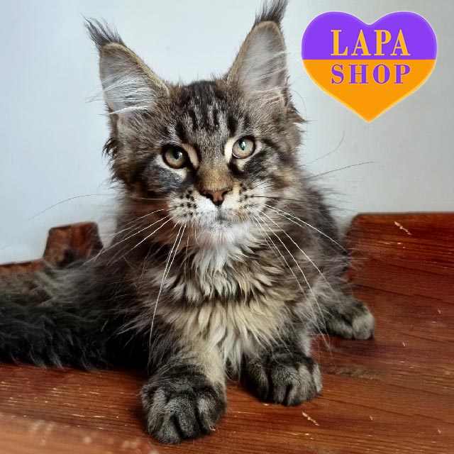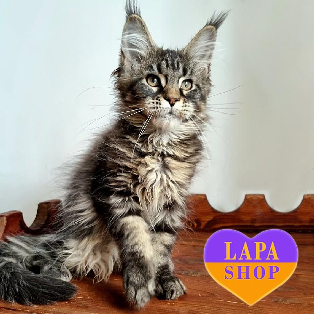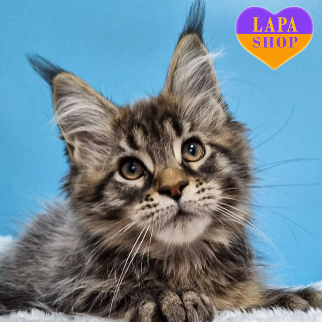 Walda — елегантна дівчинка породи мейн-кун із вишуканим чорним мармуровим (n 22) забарвленням. Її граціозність і величність не залишать вас байдужими.