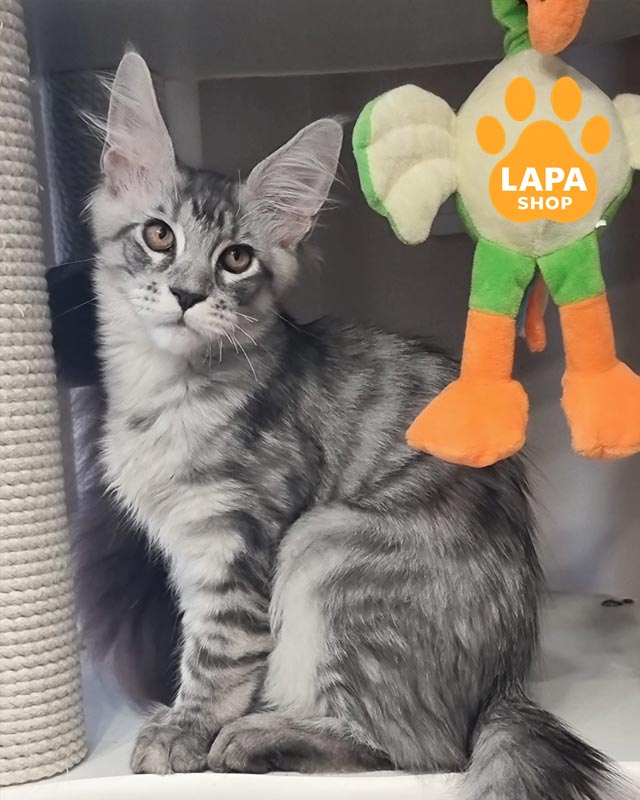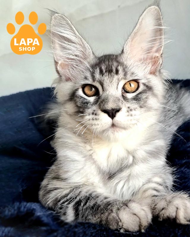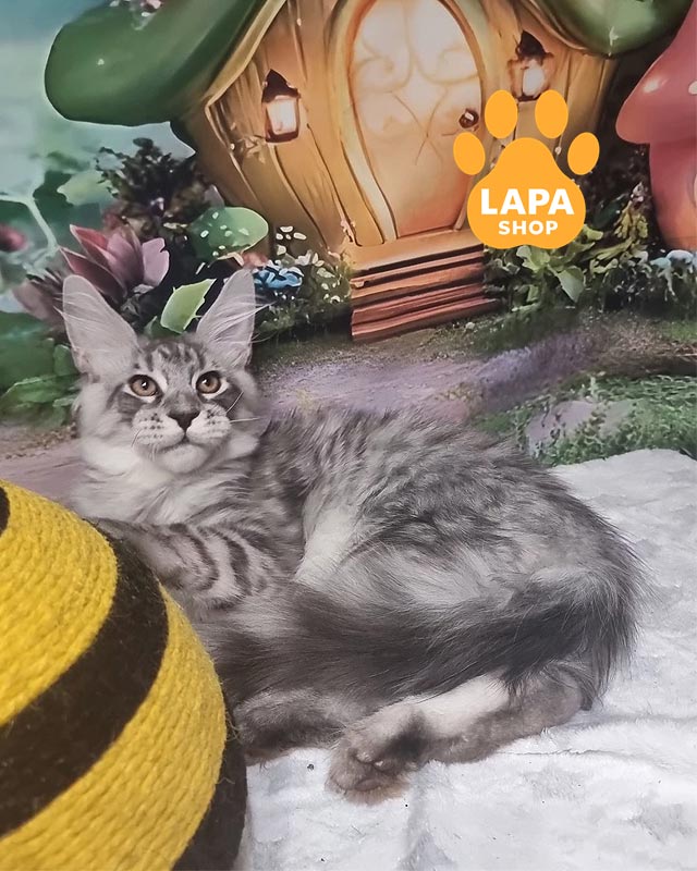 Величний мейн-кун хлопчик Zelan у сріблястому плямистому забарвленні.