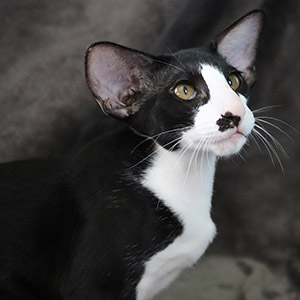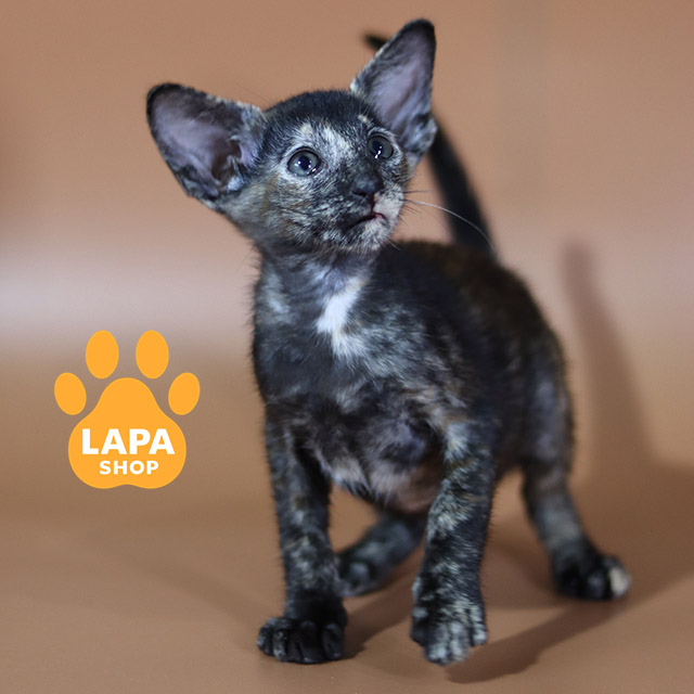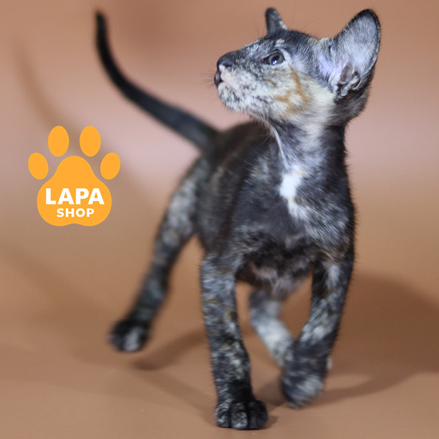 Josie — чарівна леді породи орієнтальна з привабливим забарвленням ebony tortie. Її блискуча шерсть та витончена статура роблять її особливо гарною. Великі вуха та виразні очі додають їй шарму та грації.
