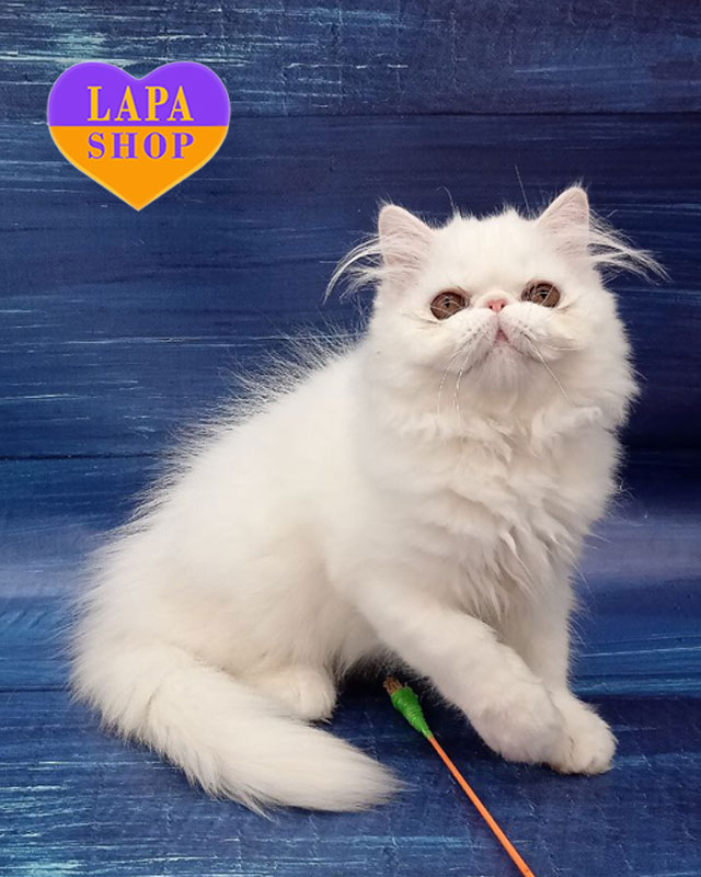 Fabbi – чарівна перська дівчинка з ніжним білим хутром і виразними жовтими очима, які світяться теплом.