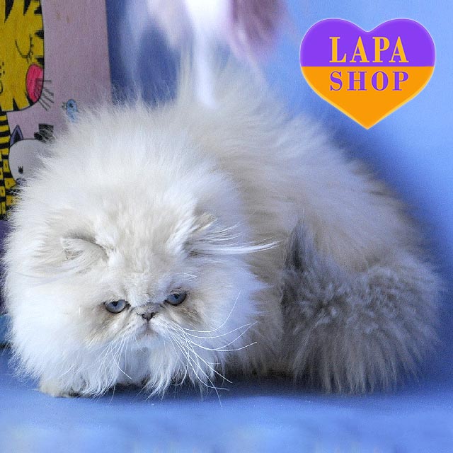 Джені — чарівна перська кішечка з ніжним блю пойнт забарвленням. Її пухнаста шерсть і ніжні блакитні відтінки роблять її вигляд особливо витонченим.