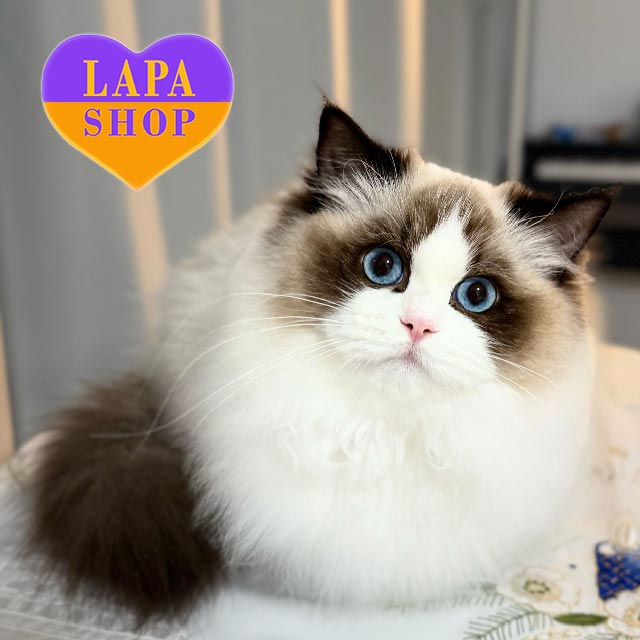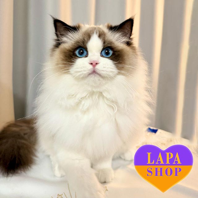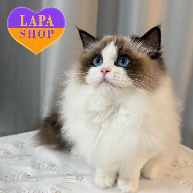 Agatha – кошеня найвищого рівня з чудовими породними даними. Вона має ідеальну анатомію, правильну голову з красивим профілем, насичений блакитний колір очей і яскраве контрастне забарвлення seal bicolour. Її розкішна, шовковиста шерсть, а також прекрасний темперамент роблять її ідеальним вибором для виставок і розведення.
