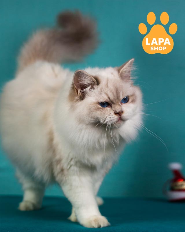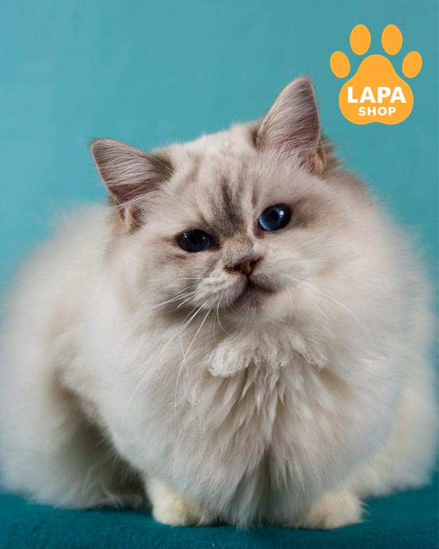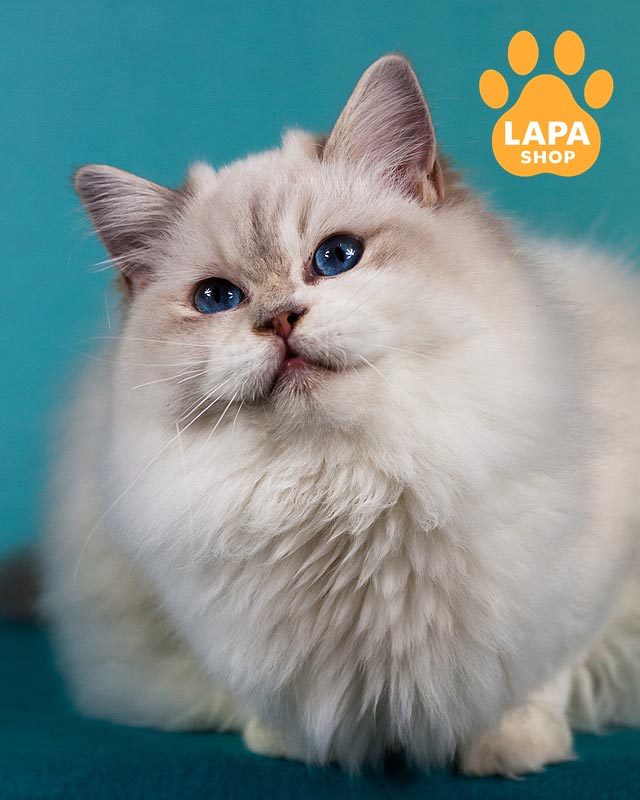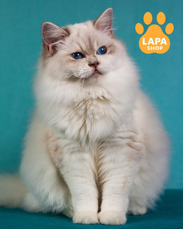 Вона має м’яку, шовковисту шерсть, акуратну статуру та великі блакитні очі з ніжним, уважним поглядом.