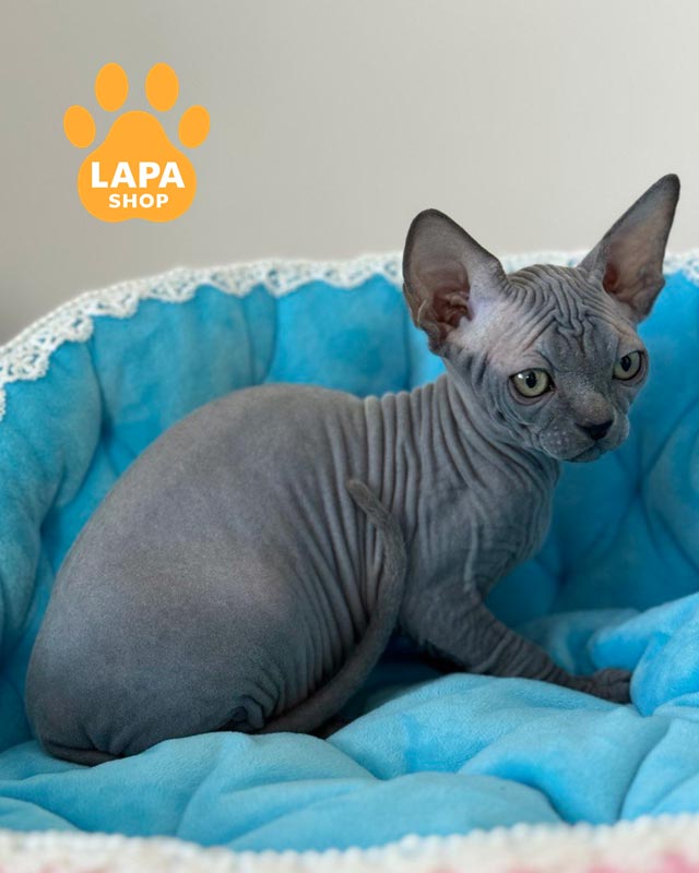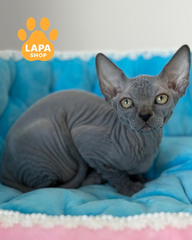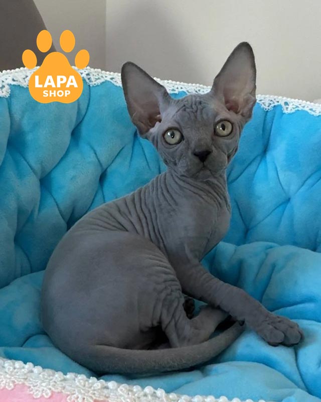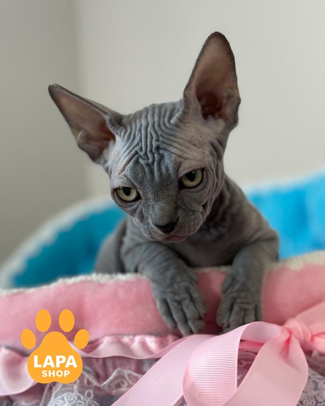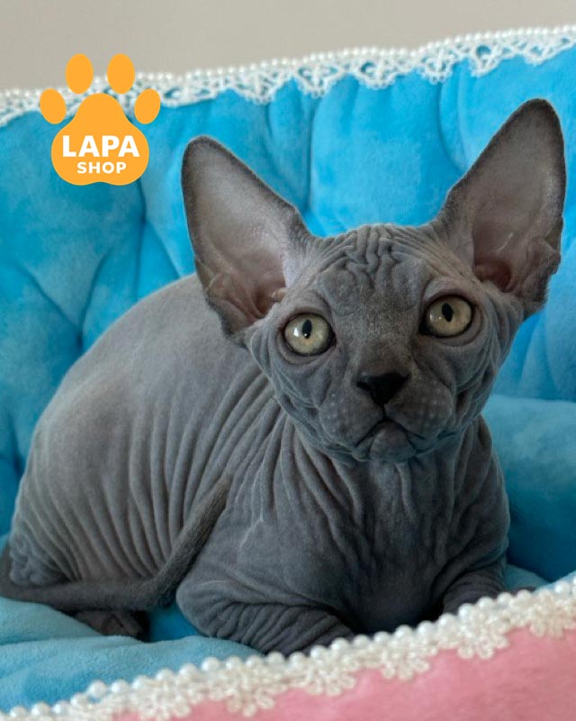 Quanta — витончена дівчинка породи канадський сфінкс із блакитним забарвленням, що підкреслює її благородний вигляд.
