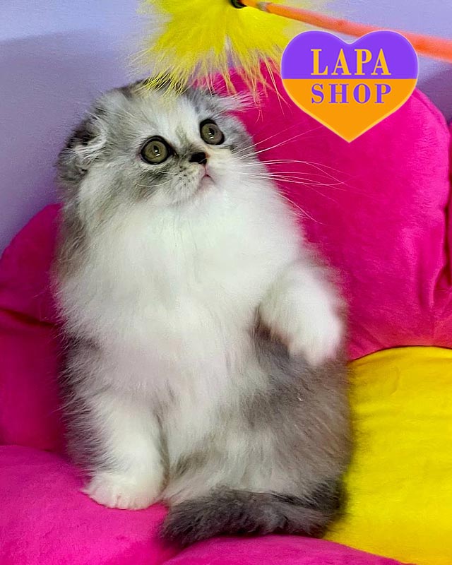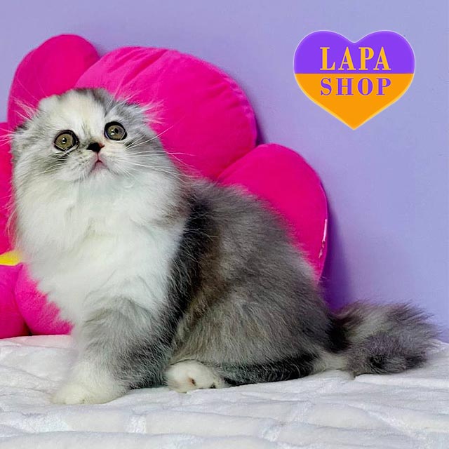 Айра — справжнє пухнасте диво з ніжним забарвленням, яке прикрашене сріблястим тоном і благородним тикінгом. Її великі округлі очі, м’яко складені вушка та довга шовковиста шерсть створюють образ казкової істоти.