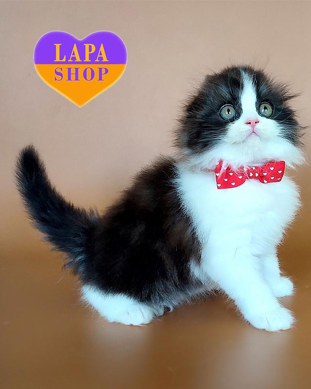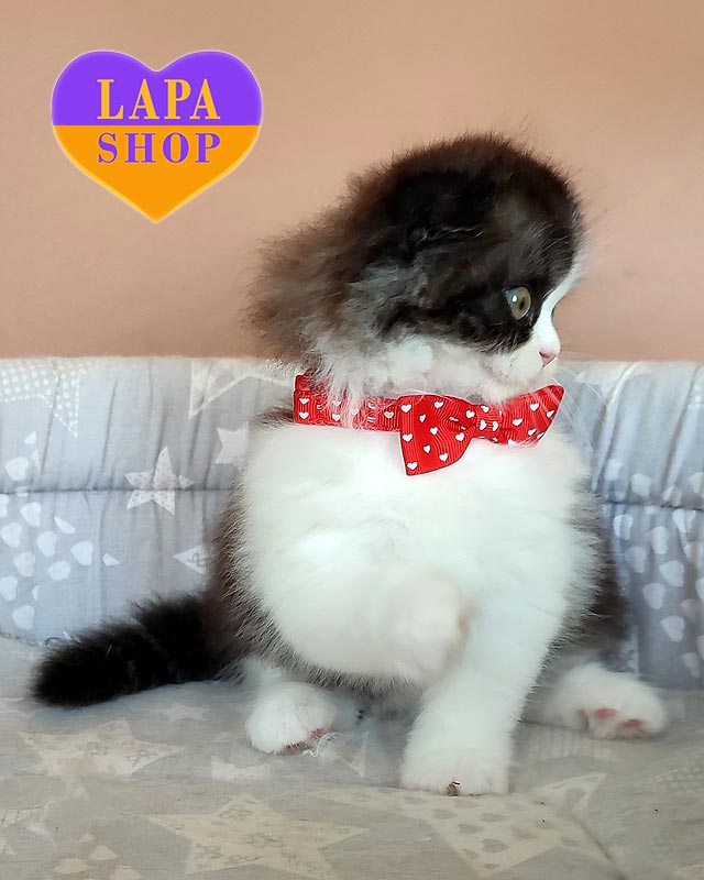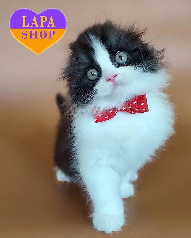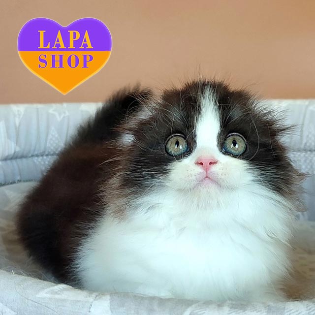 Познайомтесь із милим хлопчиком породи хайленд-фолд на ім’я Oliebol. Його чорне біколорне забарвлення виглядає стильно й контрастно, а довга шовковиста шерсть і складені вушка надають образу казкової чарівності.