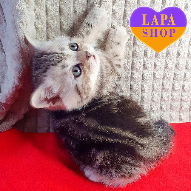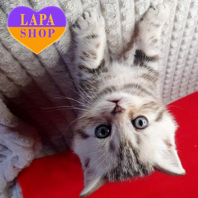 Funny – чарівний шотландський прямовухий котик із розкішним чорним сріблястим мармуровим забарвленням. Його шерсть нагадує вишуканий візерунок зі сріблястими переливами, що робить його справжнім маленьким аристократом.