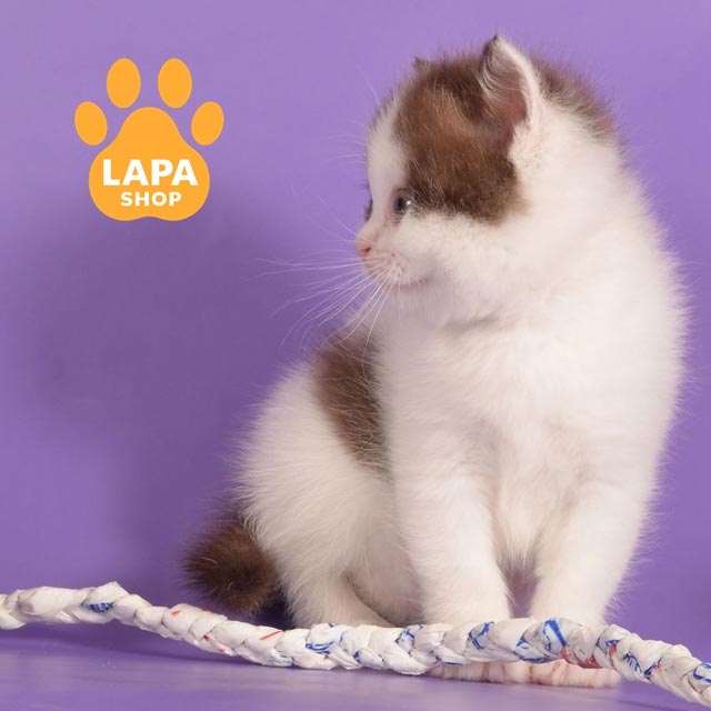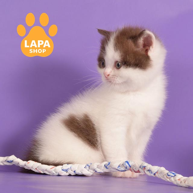 Маленький Uno має унікальне забарвлення цинамон арлекін (o 02) — біла шубка з теплими цинамоновими ділянками, що створює гармонійний і дуже ефектний контраст.