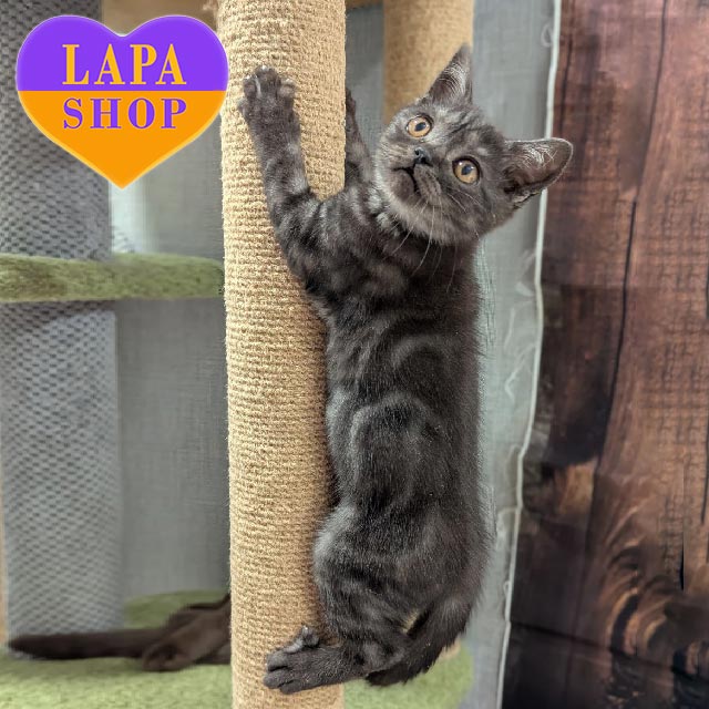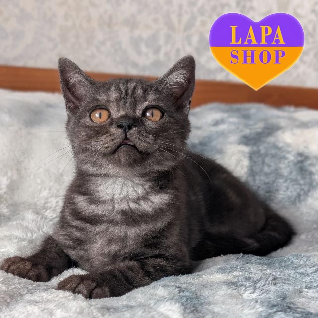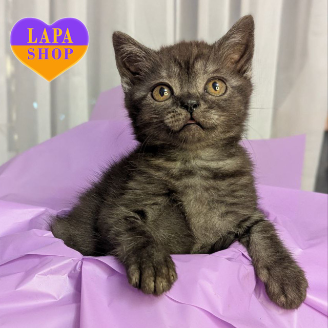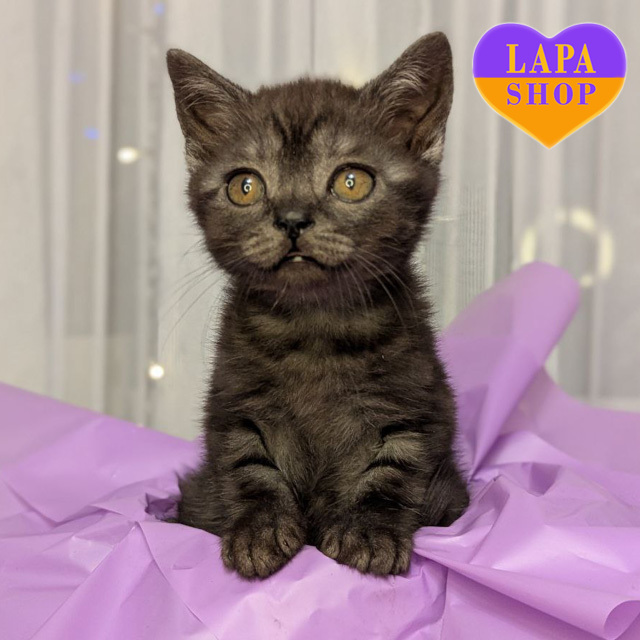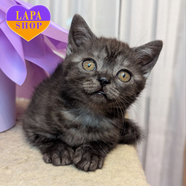 Цей чарівний хлопчик має ефектне чорне сріблясте забарвлення, яке надає йому особливого шарму. Його м’яка плюшева шерсть і складені вушка роблять його справжнім аристократом.