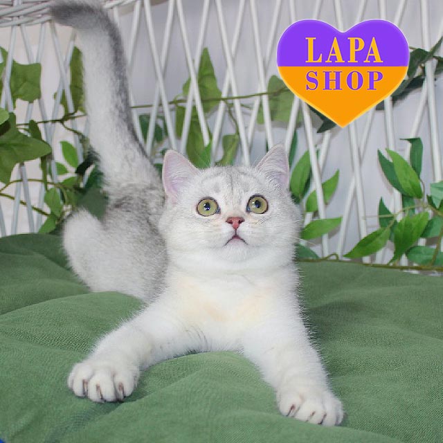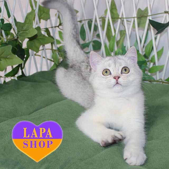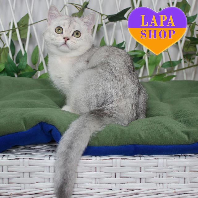 Yashma – витончена шотландська прямовуха кішечка з чарівним блакитним сріблястим затушованим забарвленням.