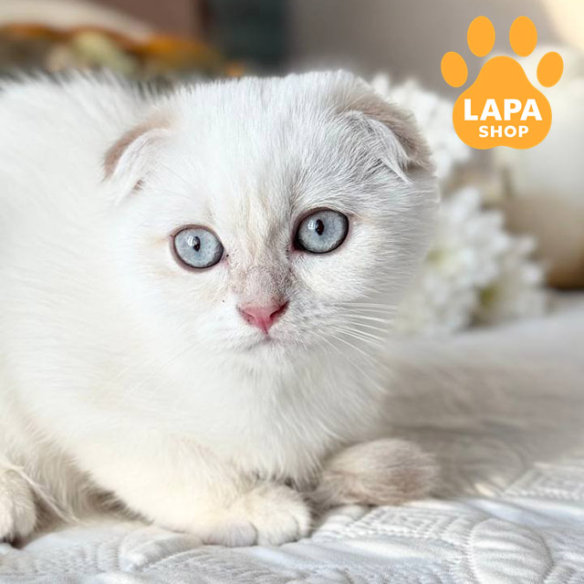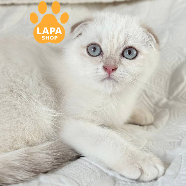 Sky — привабливий котик породи шотландська висловуха з ніжним лілово-золотим затушованим колор пойнт забарвленням. Його окрас створює враження м’якого світіння, а гармонійна статура підкреслює елегантність і витонченість.