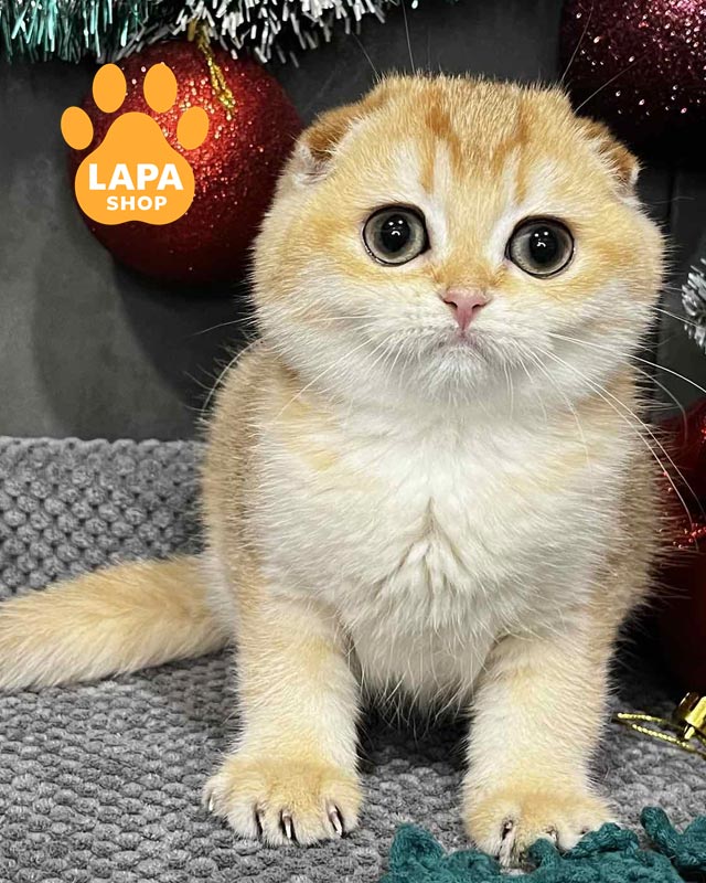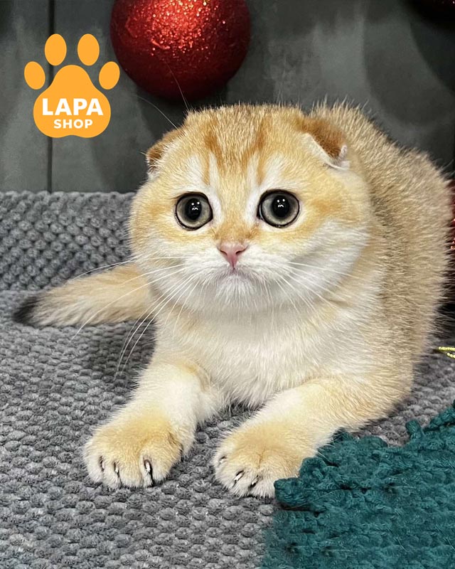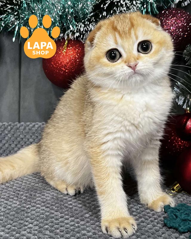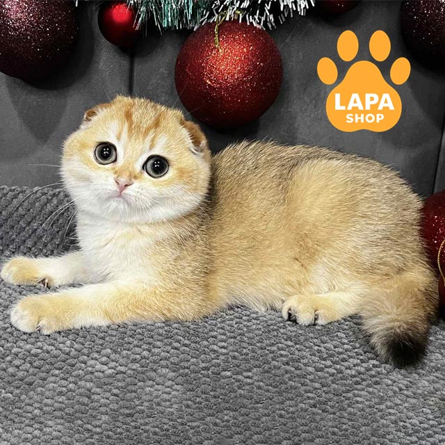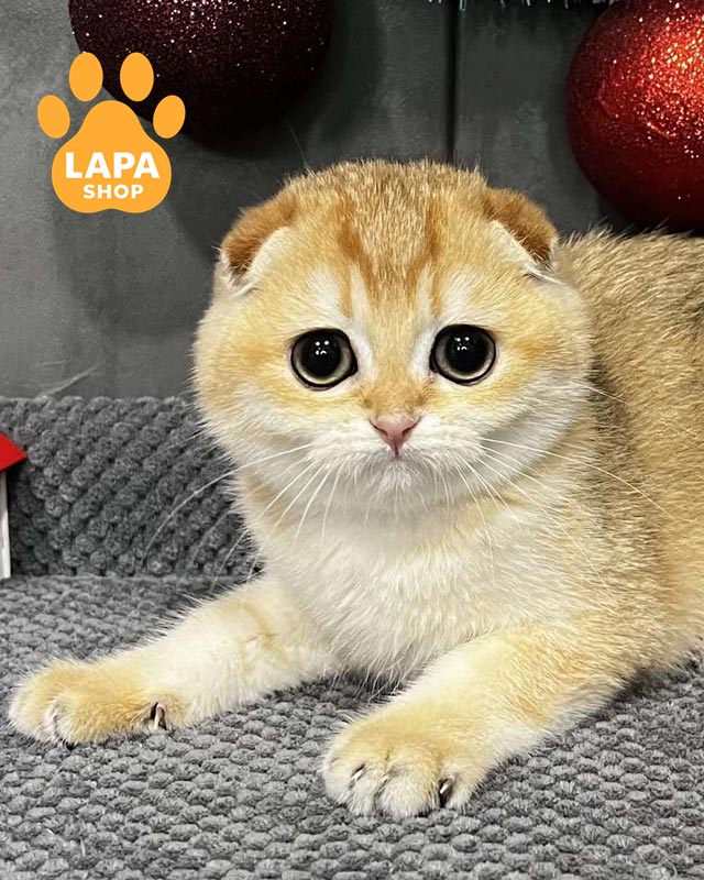 Diana — чарівна дівчинка породи скотіш-фолд. Її коротка шерсть має золоте завуальоване забарвлення, яке переливається на світлі.