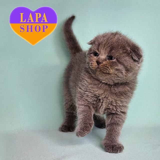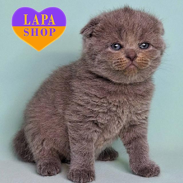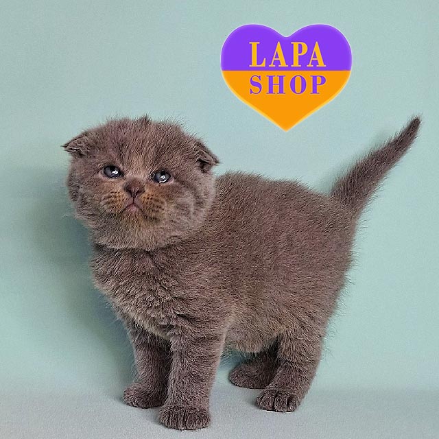 Bluery – граційна шотландська висловуха кішечка з м’якою блакитною шерсткою та чарівними оченятами.