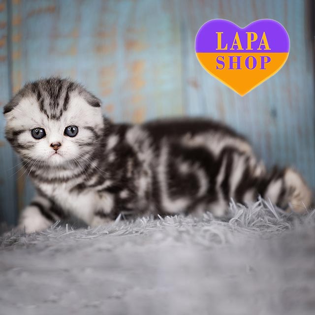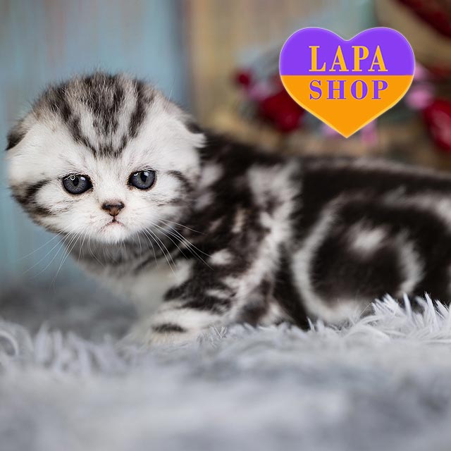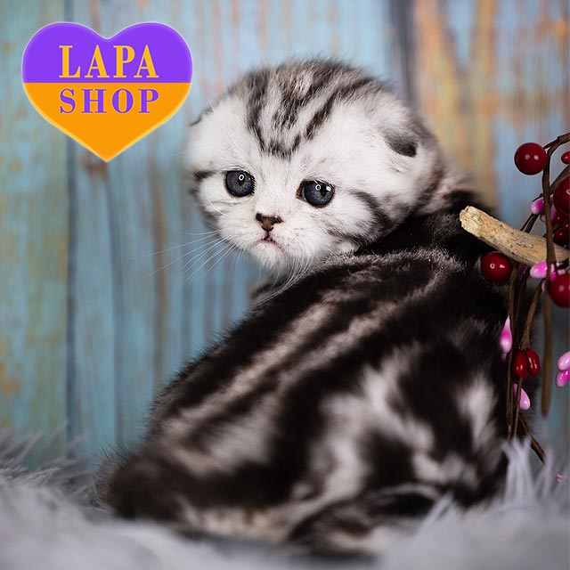 Eileen – витончена шотландська дівчинка з благородним чорним сріблястим мармуровим забарвленням (ns 22). Її м’яка шерсть прикрашена елегантними візерунками, а виразні очі випромінюють допитливість.