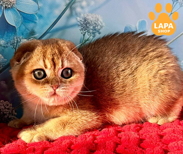 Grusha — чарівна дівчинка породи шотландська висловуха з розкішним чорним золотим затушованим забарвленням. Її гармонійні відтінки надають зовнішності шляхетності та особливого шарму.