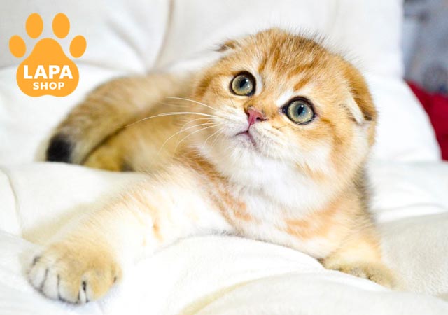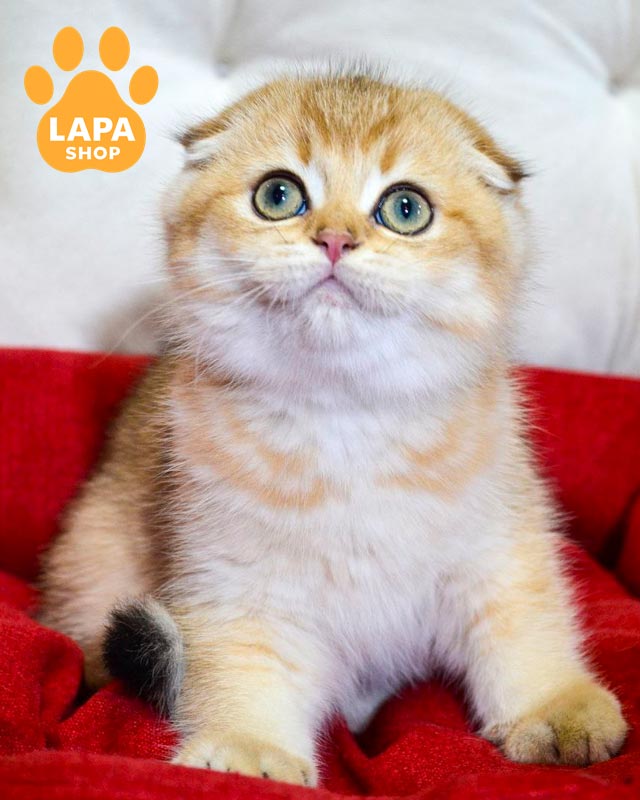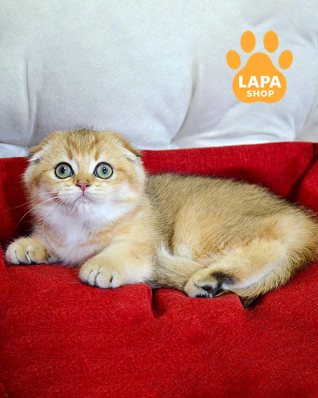 Її коротенька плюшева шерсть сяє теплим золотом, а милі складочки на вушках додають обличчю особливого виразу ніжності.
