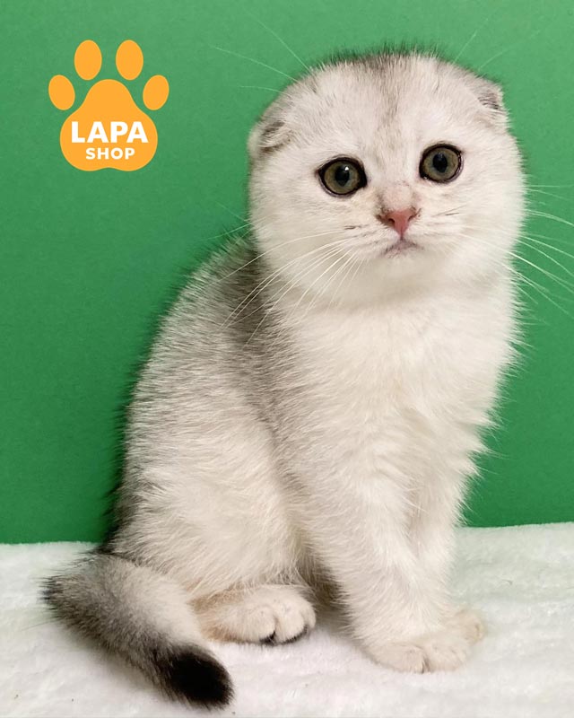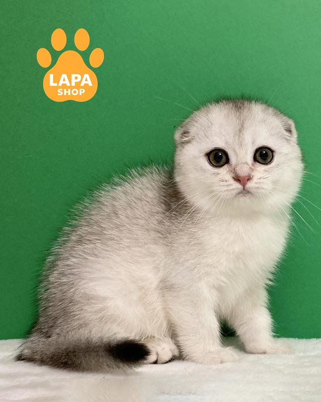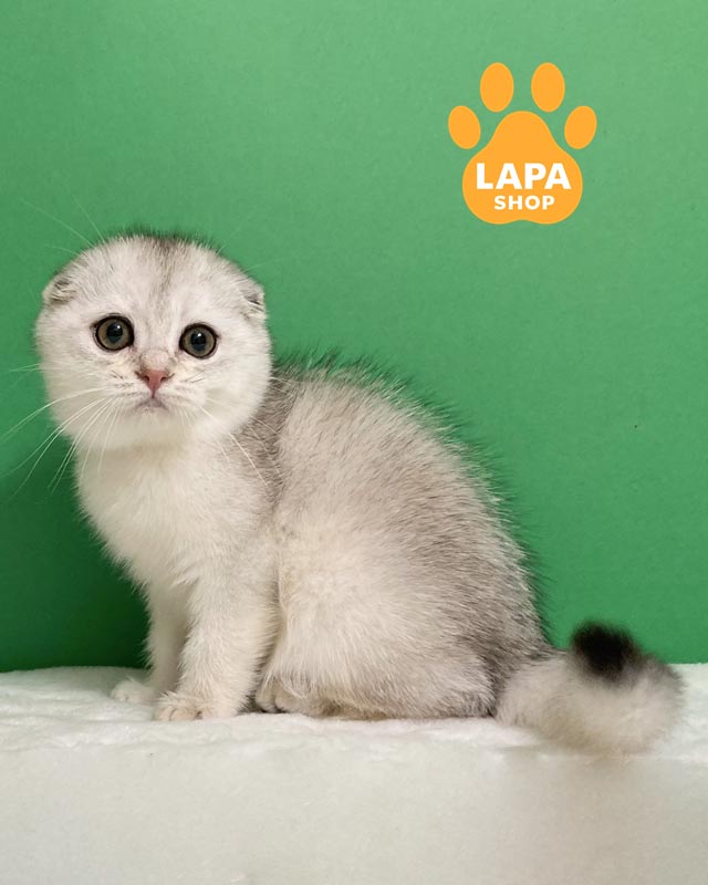Simona — витончена дівчинка скотіш-фолд із розкішним сріблястим тикованим забарвленням, що надає її шубці шляхетного блиску.