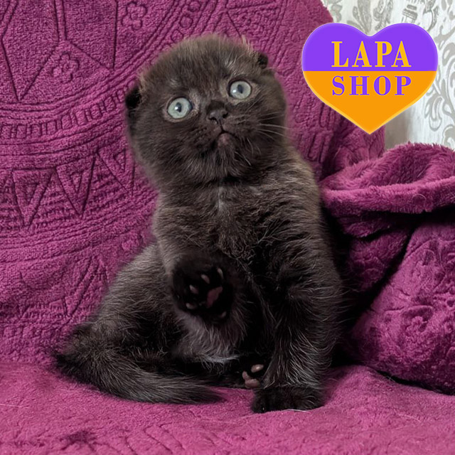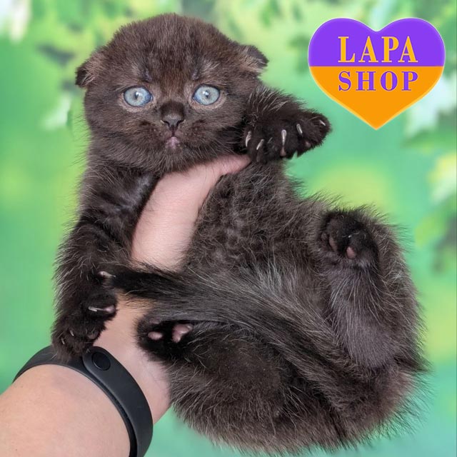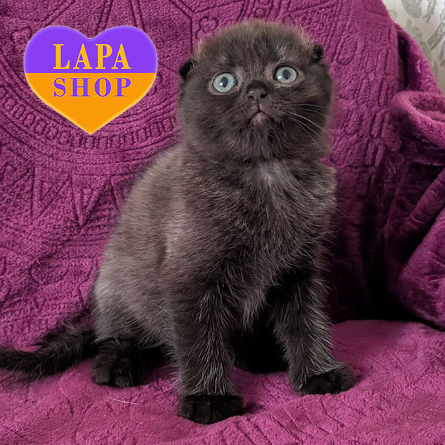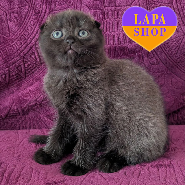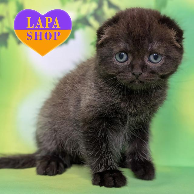 Teresa – кішечка породи скотіш-фолд з особливим шармом. Її коротка чорна шерсть підкреслює загадковість і елегантність.