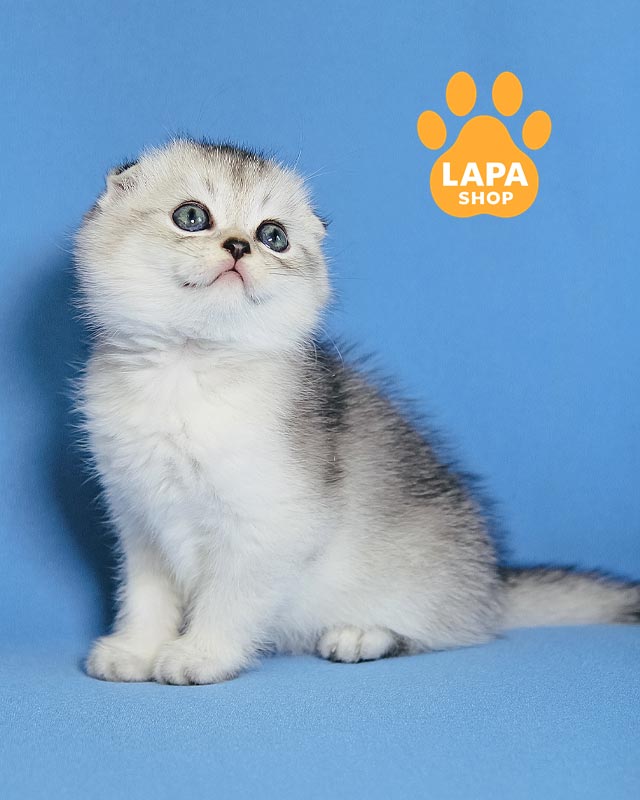 Дієго – чарівний хлопчик породи скотіш-фолд із розкішною сріблястою шерстю, що блищить, наче ранковий іній.