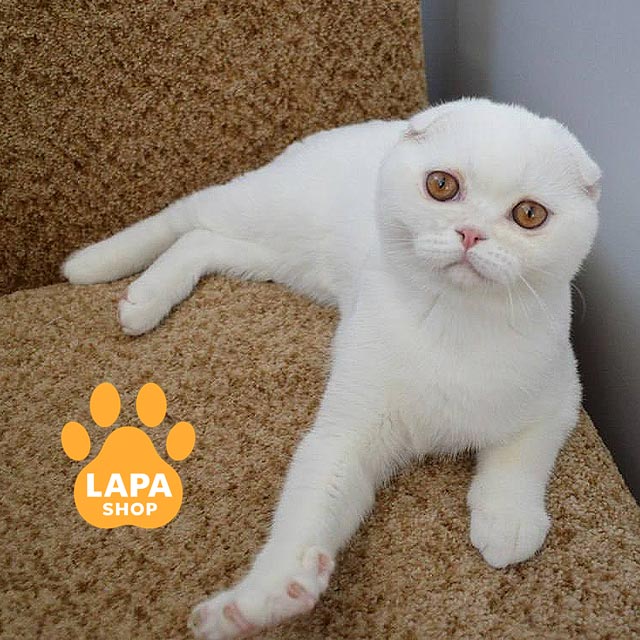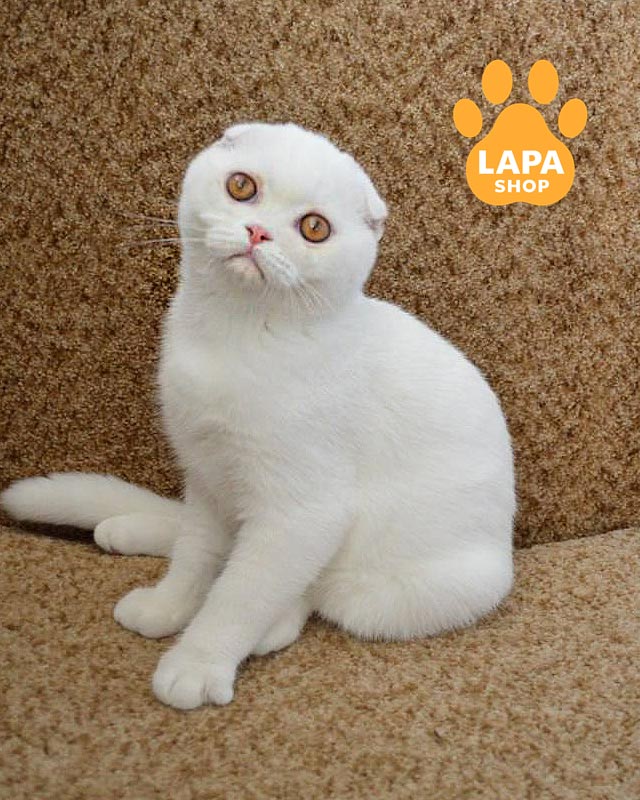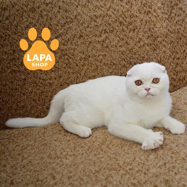 Хіп — надзвичайний скотіш-фолд із чисто-білим оксамитовим хутром і теплими янтарними очима, що випромінюють доброту.