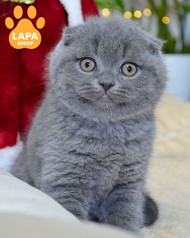 Irvin — гарний хлопчик породи скотіш-фолд з блакитним забарвленням (a), яке надає його шерсті ніжного і благородного відтінку. Його акуратні складені вушка та округлі риси мордочки підкреслюють породну красу і роблять зовнішність особливо привабливою.