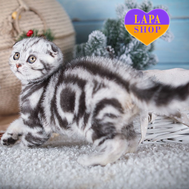 Mars — чарівний хлопчик породи скотіш-фолд з елегантним забарвленням чорне сріблясте мармурове (ns 22). Його витончені риси та мила зовнішність обов’язково підкорять ваше серце.
