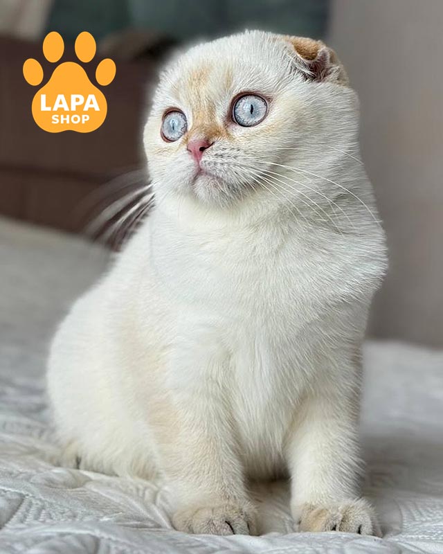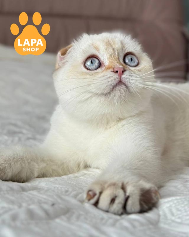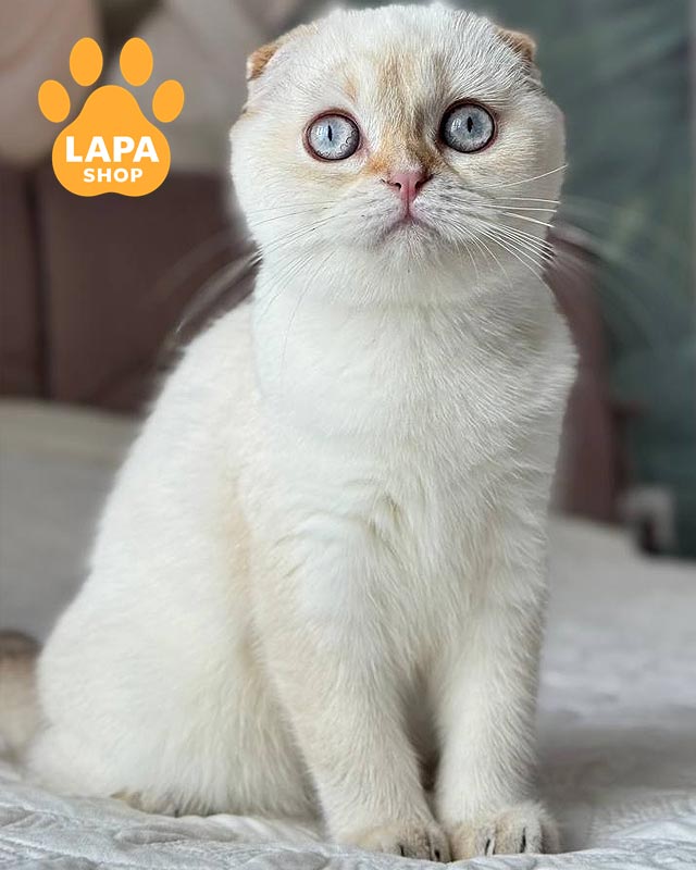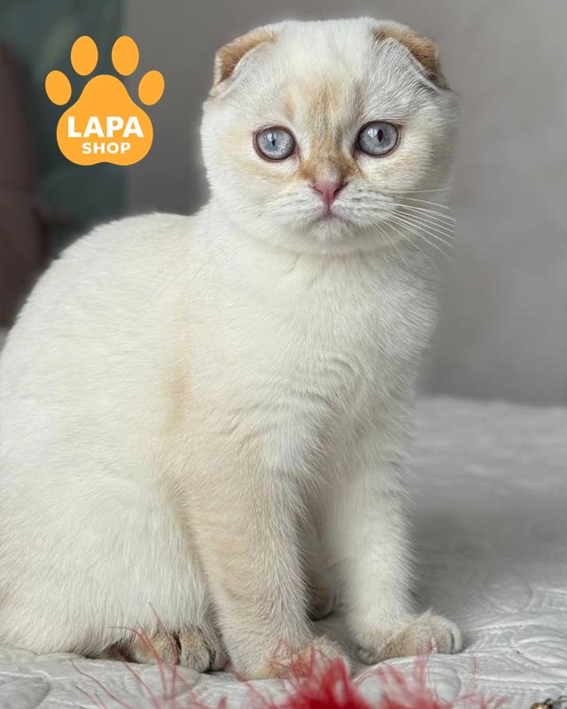 Snowflake — дівчинка породи скотіш-фолд з ніжним і благородним забарвленням ліловий золотий затушований колор пойнт (cy 11 33).