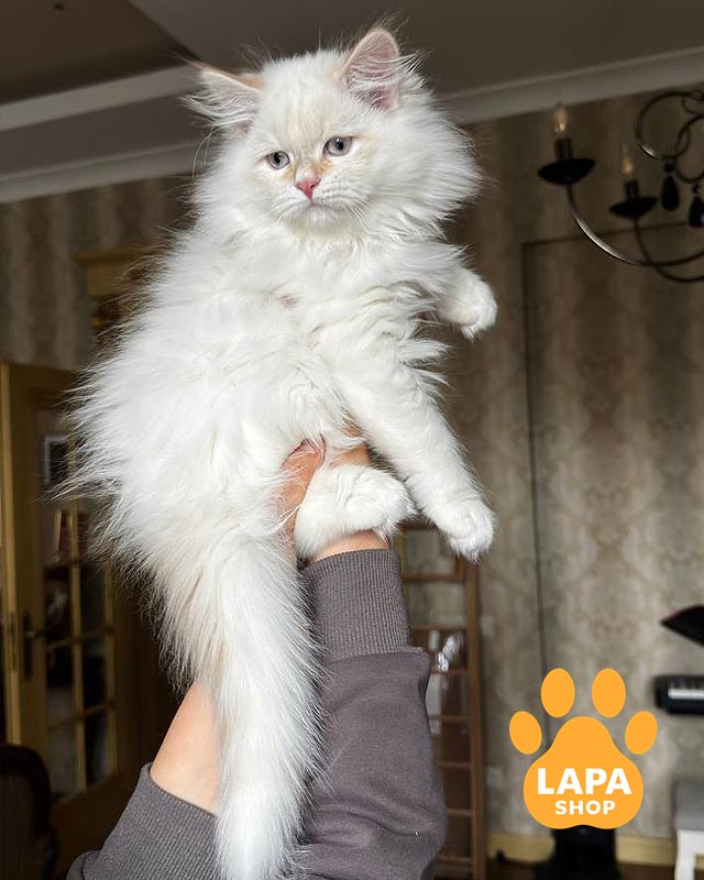 Кошеня з правильним характером і стабільною психікою. Він росте поруч із людьми, спить на руках, любить увагу і легко знаходить контакт з усіма членами сім’ї.