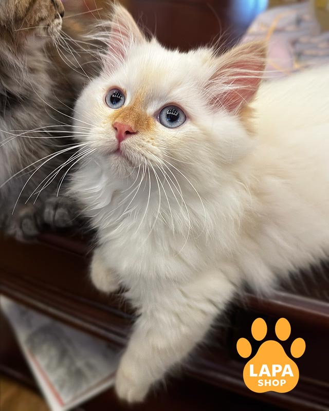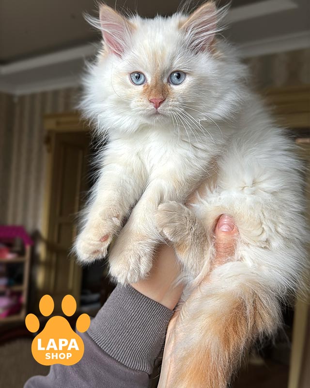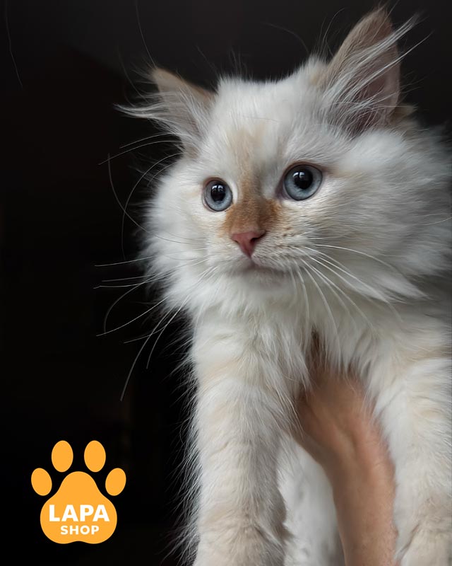 Кошеня з правильним характером і стабільною психікою. Він росте поруч із людьми, спить на руках, любить увагу і легко знаходить контакт з усіма членами сім’ї.