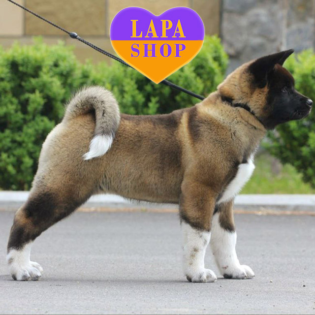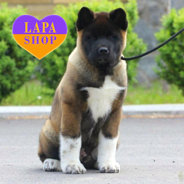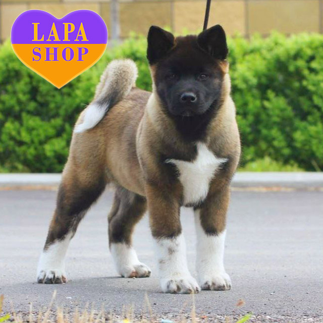 Ця дівчинка породи американська акіта має красиве біло-буре забарвлення, яке додає їй особливого шарму. Вона гармонійно складена та має міцну статуру, властиву породі.
