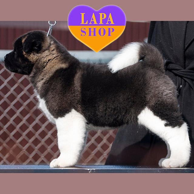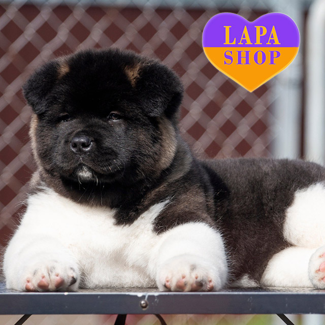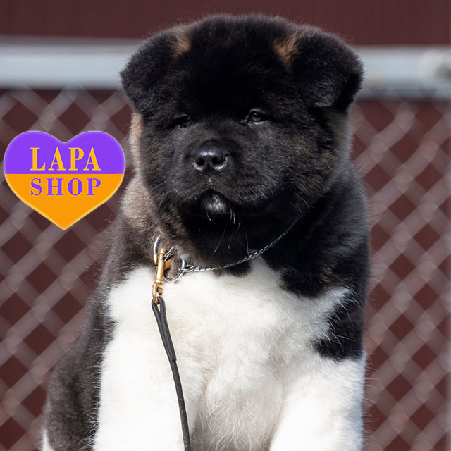 Цей чудовий хлопчик породи американська акіта вражає своєю контрастною біло-чорною забарвленістю. Його благородний вигляд та впевнена постава роблять його справжньою перлиною породи.