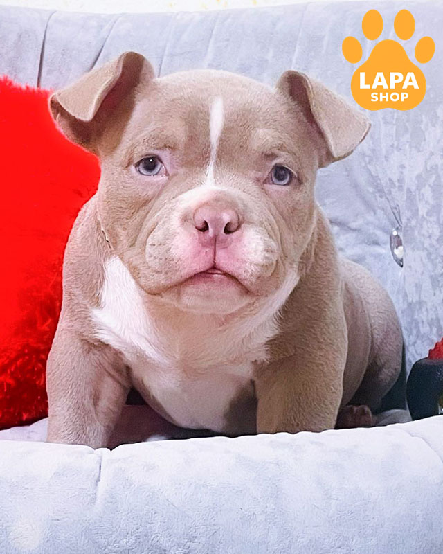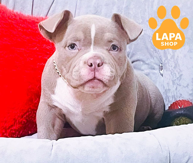 Авеліна — гарна дівчинка породи американський буллі типу мікро покет з ліловим забарвленням, яке підкреслює її компактну та пропорційну статуру.