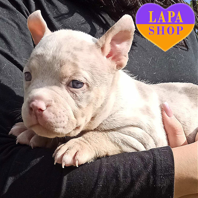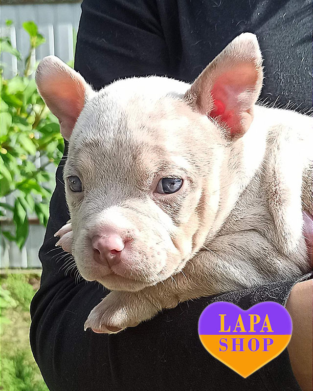 Ця красуня породи американський буллі покет має рідкісне марл забарвлення, яке виглядає ефектно та дуже привабливо. Її компактне тіло й міцна статура підкреслюють породні риси.