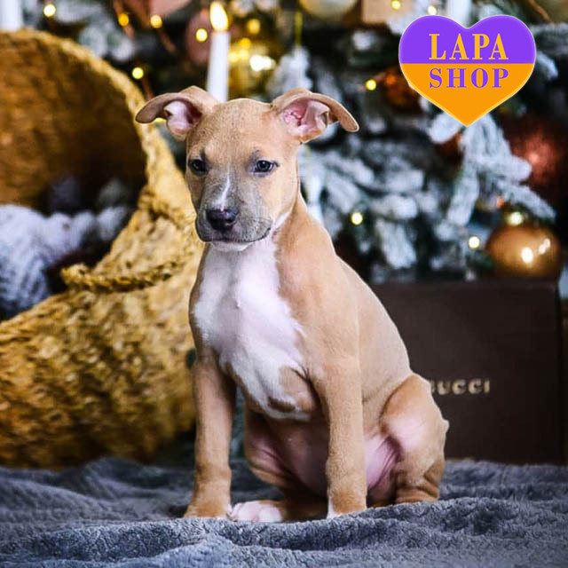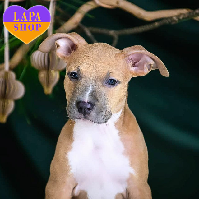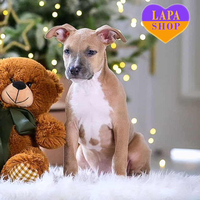 Ця мила представниця породи американський стафордширський тер’єр готова переїхати у вашу родину! Її енергія та доброзичливий вигляд створюють неповторну атмосферу тепла і щастя. Ця маленька красуня готова наповнити ваш дім радістю та любов’ю.