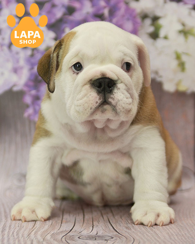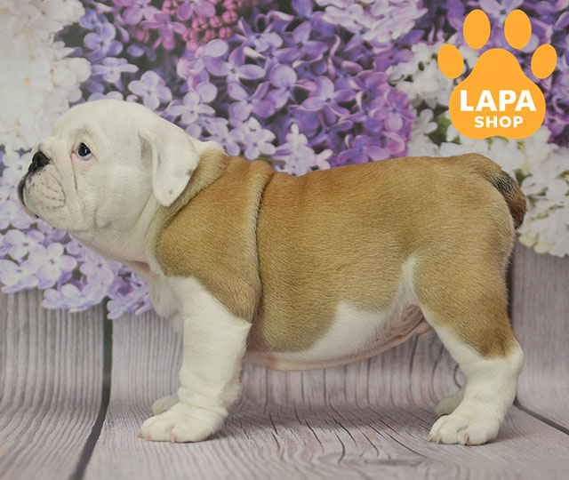 Цей яскравий хлопчик англійського бульдога має привабливе руде забарвлення з білими акцентами, що робить його вигляд особливо милим та виразним. Його компактна та міцна статура добре підкреслює характерні риси породи, додаючи йому справжнього бульдожого шарму. Контрастні відтінки шерсті роблять його зовнішність ще більш ефектною та помітною.