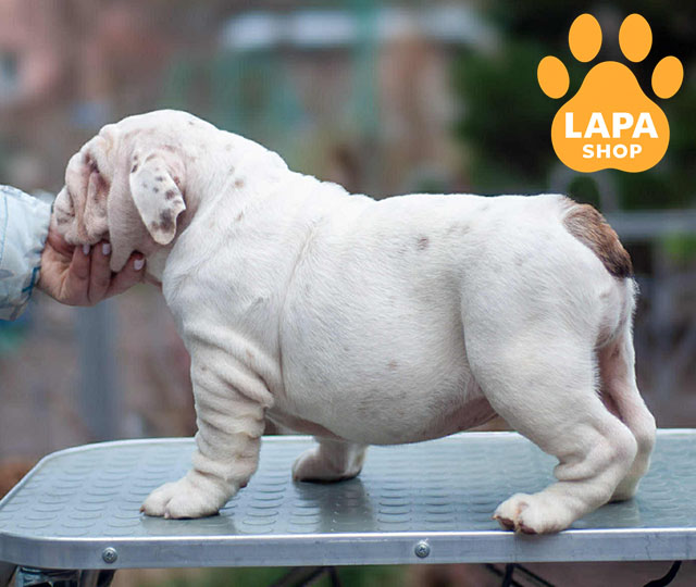 Liberti — чарівна дівчинка породи англійський бульдог з білим забарвленням та рудою плямкою на хвостику, що робить її особливо милою та впізнаваною. Її гармонійна статура та м’які риси обличчя додають особливого шарму. Вона виглядає доглянутою та здоровою, готова стати частиною сім’ї.