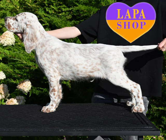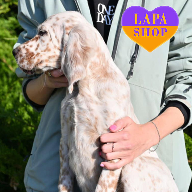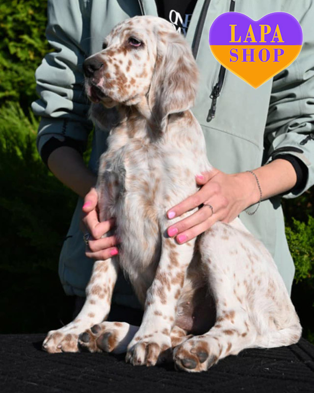 Красивий хлопчик породи англійський сетер Siver оранж-бельтонного забарвлення має гармонійну статуру та благородний вигляд. Його елегантна шерсть і окрас роблять його помітним у будь-якому середовищі. Цей пес стане чудовим супутником для активної родини та принесе радість кожного дня.