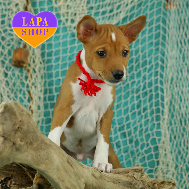Cooper — вишуканий представник породи басенджі з елегантним рудо-білим забарвленням. Його гармонійна будова та родовід з чемпіонськими титулами батьків обіцяють чудові перспективи для шоу та розведення.