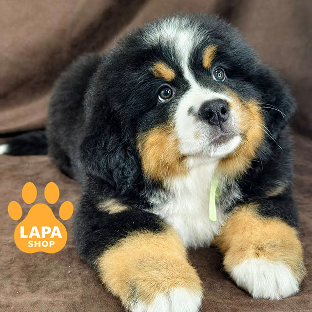 Ця чарівна дівчинка бернського зенненхунда вражає класичним триколорним забарвленням, яке гармонійно підкреслює її витончений та породний вигляд. Її густа шубка та правильні пропорції вже зараз формують образ майбутньої величної представниці породи.