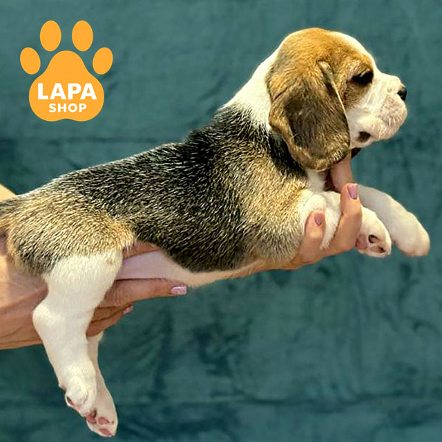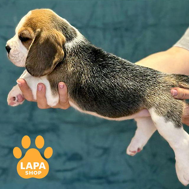 Ця мила дівчинка породи бігль з триколорним забарвленням, яке гармонійно підкреслює її породну зовнішність. Вона має пропорційну статуру та доглянуту шерсть, що додає їй особливого шарму.