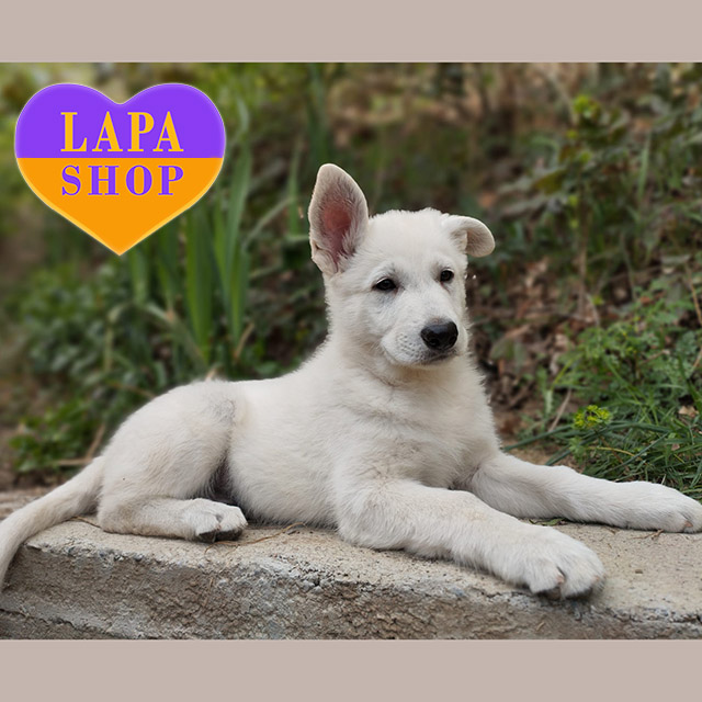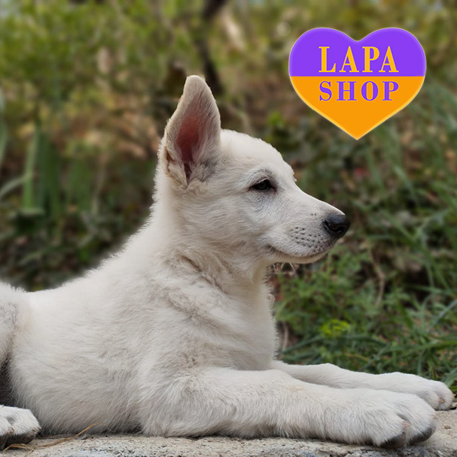 Цей хлопчик породи біла швейцарська вівчарка вражає ідеально чистим, сніжно-білим забарвленням та гармонійною будовою тіла. Його пухнаста шерсть м’яка й шовковиста, а витончені лінії корпусу підкреслюють елегантну поставу.