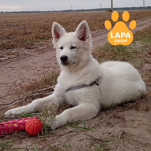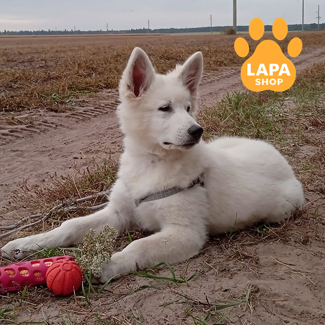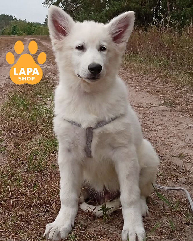 Красивий хлопчик породи біла швейцарська вівчарка з розкішною довгою білою шерстю. Має спокійний і врівноважений темперамент, що робить його чудовим супутником для родини. Його благородна зовнішність і лагідний погляд підкорюють з першого знайомства.