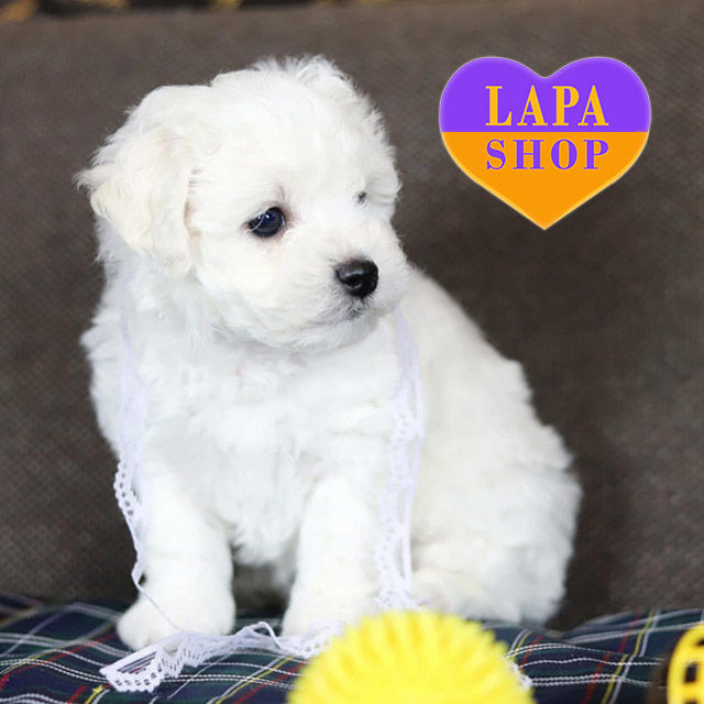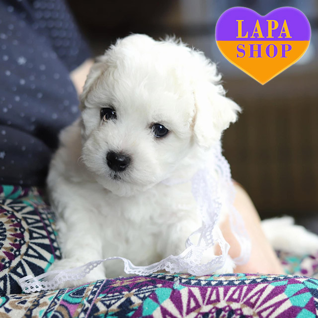 Цей маленький красень породи бішон фрізе має чудове біле забарвлення, яке підкреслює його ніжну та граційну зовнішність. Його дружелюбний вигляд та елегантна постава зроблять його чудовим компаньйоном для вашої родини.