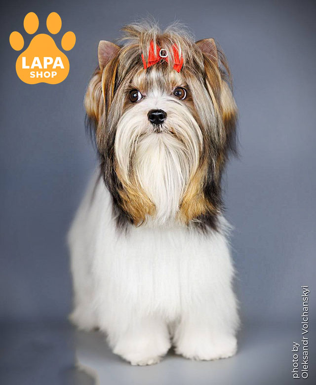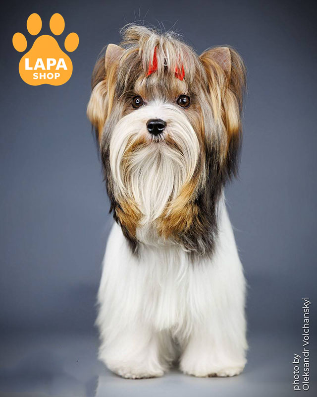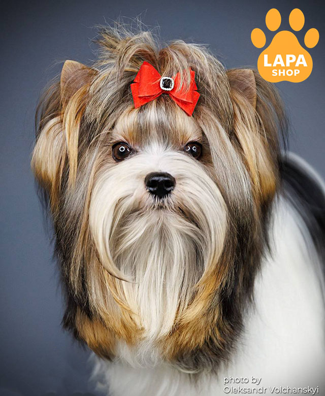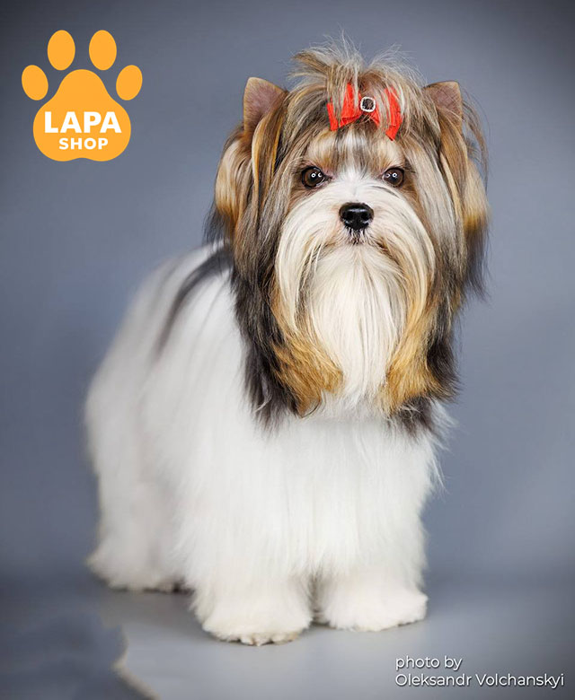 Cario — милий хлопчик породи бівер-йоркширський тер’єр із гармонійним поєднанням білого, чорного та золотого забарвлення. Його шовковиста шерсть і виразний погляд додають йому особливого шарму.