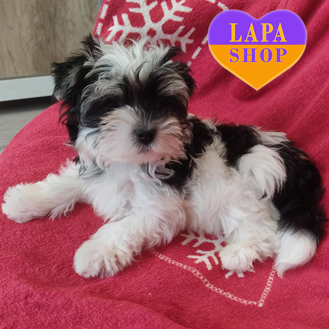 Цей хлопчик породи бівер йоркширський тер’єр має розкішне триколірне забарвлення black-white-gold, що гармонійно поєднує контрастні кольори. Його компактна будова і гарно сформована мордочка додають особливого шарму. Завдяки маленькому розміру та вишуканому вигляду він ідеально пасуватиме для домашнього улюбленця.